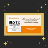 Die Platzierung im Handelsblatt-Ranking „Beste Steuerberater 2026“ bedeutet uns viel – sie bestätigt unseren Anspruch, unsere Mandantinnen und Mandanten mit Fachkompetenz, Engagement und persönlicher Beratung bestmöglich zu begleiten.