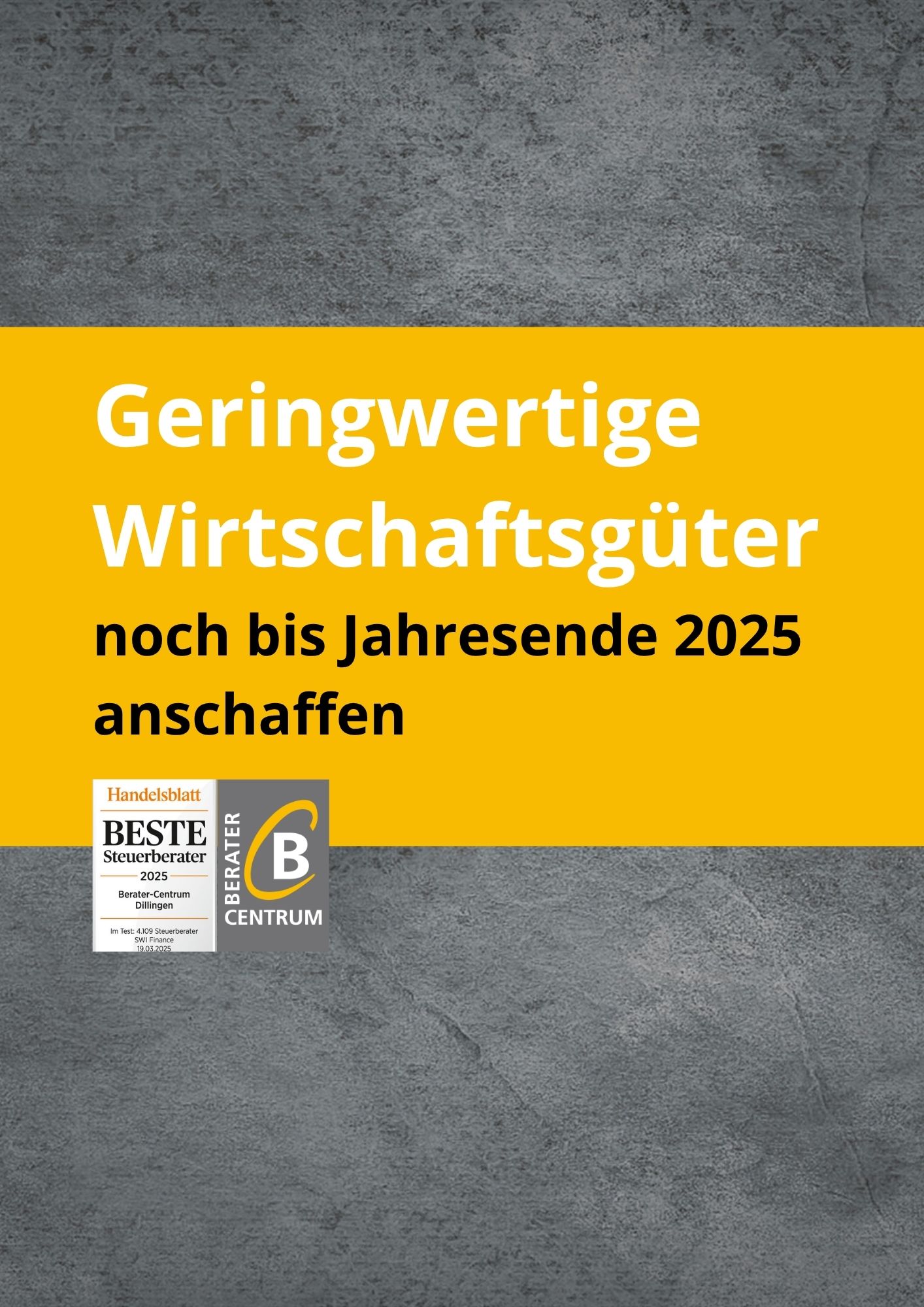 Damit sich die Aufwendungen für diese sog. geringwertigen Wirtschaftsgüter (GWG) noch im laufenden Kalenderjahr in voller Höhe auswirken, muss die Anschaffung bis zum 31.12.2025 erfolgen.